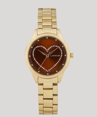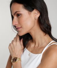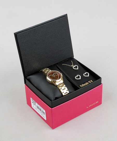 Kit de Relógio Analógico Lince Feminino + Colar + Brinco - LRG4557L KV12N1KX Dourado - Único