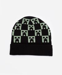 kit infantil de gorro e luvas de tricot minecraft preto - UNICO