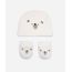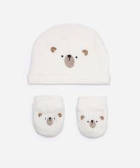 kit infantil de touca e luva com carinha urso off white - UNICO