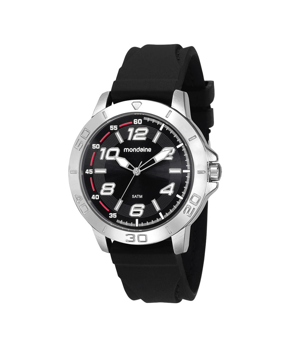 • Pulseira emborrachada na cor preta, garantindo conforto e durabilidade.