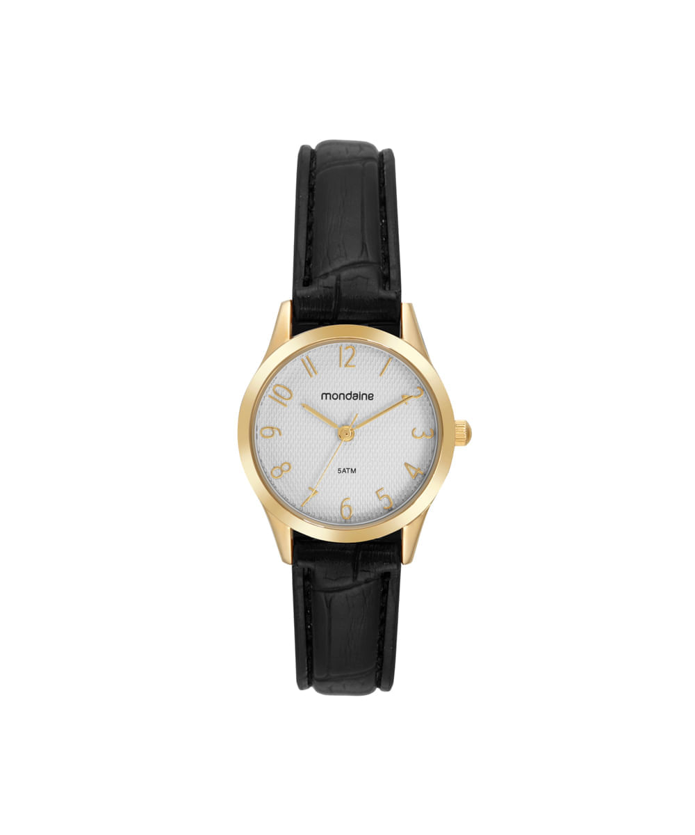• Relógio com mecanismo analógico, caixa de metal e pulseira em couro com elegante textura croco.