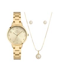 kit relógio feminino technos analógico 2035ndm k1x dourado - UNICO