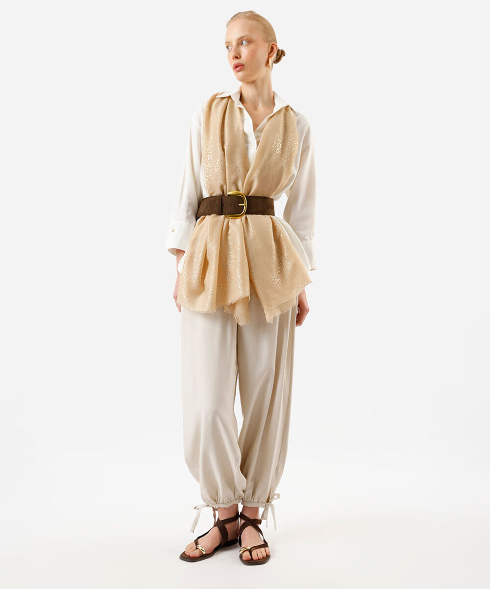 lenço com brilhos retangular bege - UNICO