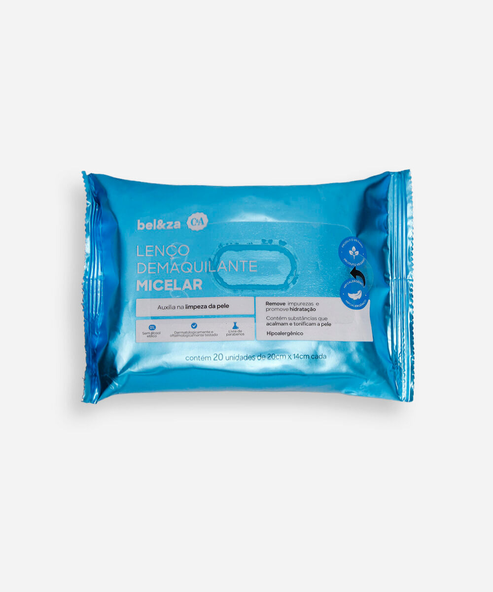 O Lenço Demaquilante Micelar C&A auxilia na limpeza do rosto, removendo impurezas e deixando sua pele super hidratada. Enriquecido com substâncias que acalmam e tonificam, ele oferece aquele toque suave que você adora. E o melhor: é hipoalergênico, perfeito para peles delicadas. Cuide da sua pele com todo carinho, sem preocupações!