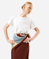 Use-o como um lenço de pescoço para complementar uma camisa básica ou um blazer. Para um visual mais despojado, amarre-o no cabelo como uma faixa ou no rabo de cavalo. Ele também funciona perfeitamente como um detalhe charmoso amarrado na alça da sua bolsa favorita, trazendo um ponto de cor para o look.