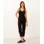 Para um visual descontraído, combine este macacão preto com sandálias rasteiras ou tênis brancos. Se a ocasião pedir um toque mais arrumado, aposte em sandálias de salto e acessórios metalizados. A versatilidade do macacão feminino longo o torna perfeito para um almoço com amigos, um dia de trabalho ou um evento noturno.