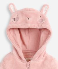 macacão longo de fleece infantil com capuz coelhinho rosa