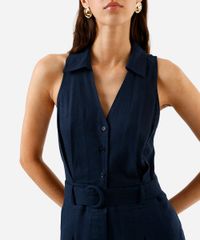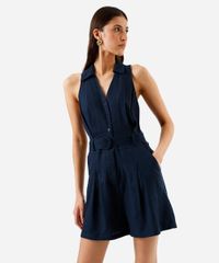 macaquinho feminino com cinto com linho azul