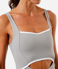 macaquinho feminino esportivo ace de poliamida com recorte cinza