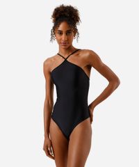 Maiô dupla face feminino confeccionado em malha de poliamida com proteção UV. A peça tem modelagem confortavelmente ajustada ao corpo, com cobertura mediana na parte posterior, alças finas ajustáveis e decote halterneck.