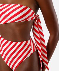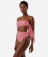 maiô feminino sem alças com amarração listras diagonais vermelho