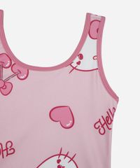 Maiô infantil confeccionado em malha com toque leve e proteção UV+ com estampa da personagem "Hello kitty". A peça possui modelagem justa ao corpo com decote em U, alças médias, forro interno e acabamento pespontado. Composição: 90% poliéster 10% elastano Instruções de lavagem: - Lavar à mão - Proibido o alvejamento - Não secar em tambor - Secagem em varal à sombra - Passar à temperatura média - Limpeza à úmido, processo normal