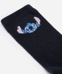 Par de meias confeccionado em malha com toque macio e estampa localizada do Stitch. O modelo tem cano alto, caimento ajustado aos pés e acabamento canelado na parte superior.