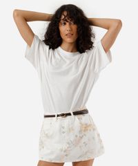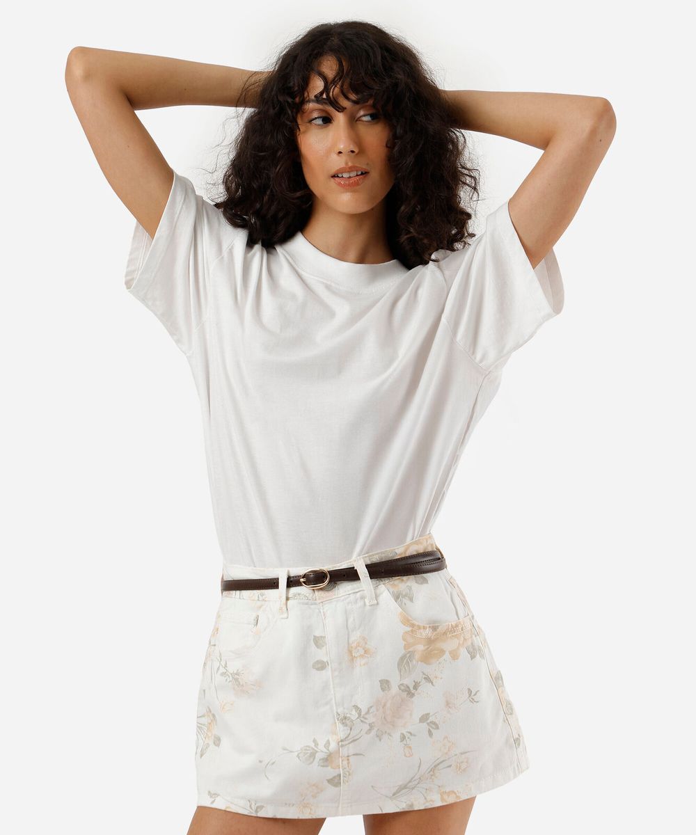 mini short saia feminino de sarja floral off white