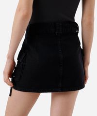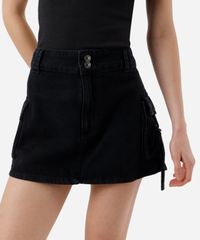 minissaia cargo feminina jeans cintura média preta