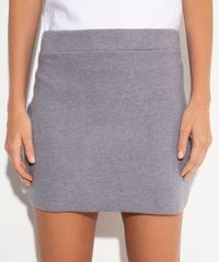minissaia de tricot cintura alta mindset cinza mescla claro