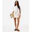 minissaia feminina jeans cintura média sarja bordados bege