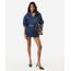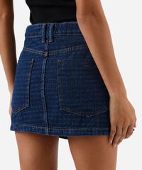 minissaia feminina jeans xadrez cintura média azul