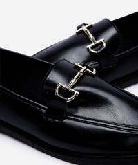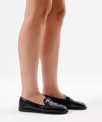 Mocassim feminino produzido em material sintético. A peça possui bico arredondado, cabedal com bridão metálico dourado, detalhes pespontados, palmilha acolchoada, solado flat e texturizado, que oferece mais segurança e estabilidade ao caminhar.
