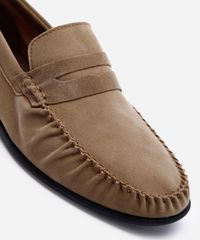 Mocassim masculino desenvolvido em material sintético resistente. O modelo tem bico redondo e cabedal com franzidos, tira com recorte vazado e acabamento pespontado. Possui palmilha macia com inscrição de marca e sola texturizada que auxilia no caminhar.