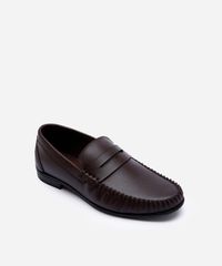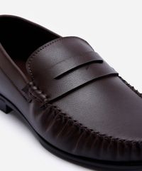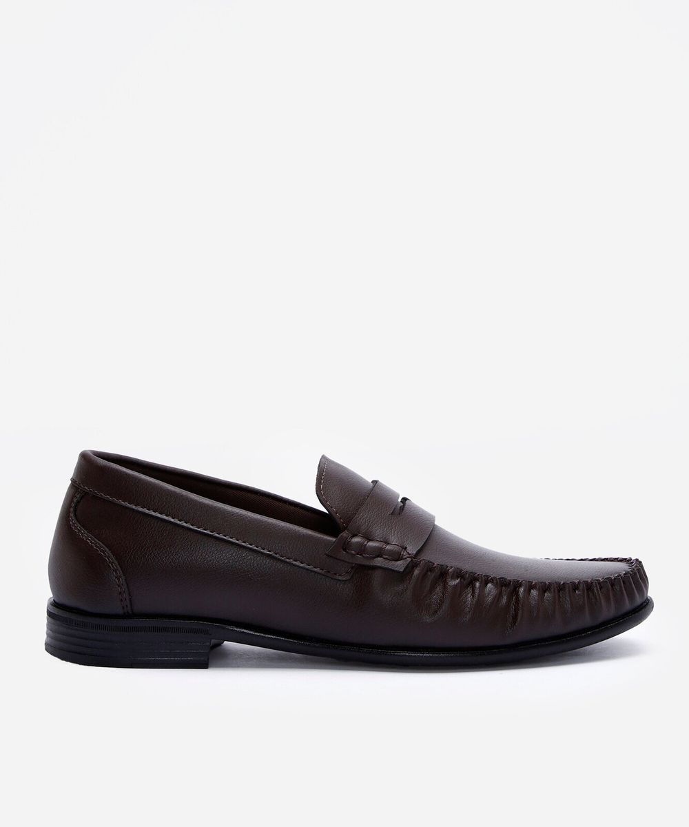 Mocassim masculino desenvolvido em material sintético resistente. O modelo tem bico redondo e cabedal com franzidos, tira com recorte vazado e acabamento pespontado. Possui palmilha macia com inscrição de marca e sola texturizada que auxilia no caminhar.