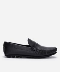 Mocassim masculino desenvolvido em material sintético resistente. O modelo tem bico redondo e cabedal com tira recortada aplicada e acabamento pespontado. Possui solado macio com inscrição de marca e sola texturizada que auxilia no caminhar.