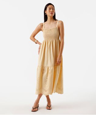 vestido longo alça fina com franzidosR$ 179,99 Até 3x de R$ 59,99