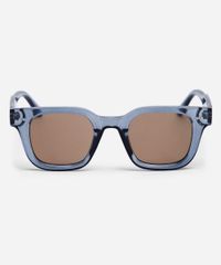 Óculos de sol masculino desenvolvido em acetato resistente na cor azul, formato quadrado com as extremidades arredondadas. A lente na cor marrom, a ponte em U e plaquetas embutidas. Com proteção da lente UVA e UVB.