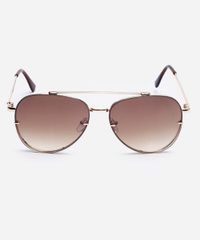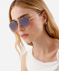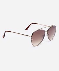 Óculos de sol desenvolvido em metal resistente na cor dourada com formato aviador e as extremidades arredondadas. Lente na cor marrom degradê, ponte em U e plaquetas embutidas. Com proteção da lente UVA e UVB. A Triton é uma marca de óculos brasileira com mais de 40 anos, especializada no mercado ótico, tem o propósito de levar modelos de acessórios: óculos de sol, óculos de grau e óculos clipon personalizados para o público masculino, feminino e infantil.