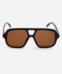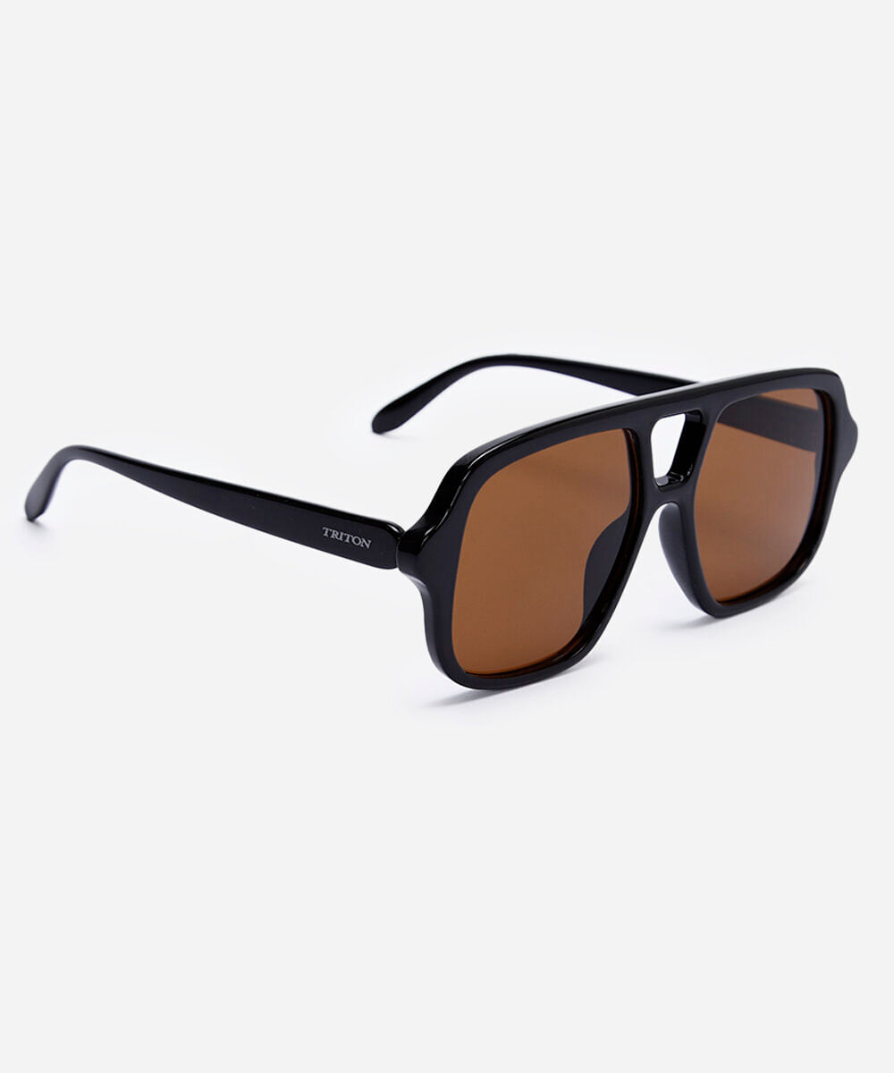 Óculos de sol desenvolvido em acetato resistente na cor preta com formato aviador e as extremidades arredondadas. Lente na cor marrom, ponte em U e plaquetas embutidas. Com proteção da lente UVA e UVB. A Triton é uma marca de óculos brasileira com mais de 40 anos, especializada no mercado ótico, tem o propósito de levar modelos de acessórios: óculos de sol, óculos de grau e óculos clipon personalizados para o público masculino, feminino e infantil.