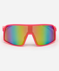 Óculos de sol esportivo feminino desenvolvido em acetato resistente na cor rosa com formato geométrico com as extremidades arredondadas. A lente colorida com efeito espelhado, a ponte em U e plaquetas embutidas. Com proteção da lente UVA e UVB.