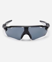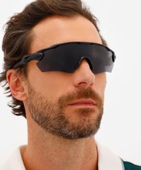 Óculos de sol esportivo unissex desenvolvido em acetato resistente na cor preta com formato geométrico com as extremidades arredondadas. A lente cinza, a ponte em U e plaquetas embutidas. Com proteção da lente UVA e UVB.