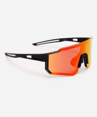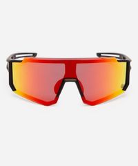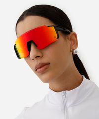 Óculos de sol esportivo unissex desenvolvido em acetato resistente na cor branca com formato geométrico com as extremidades arredondadas. A lente colorida com efeito espelhado, a ponte em U e plaquetas embutidas. Com proteção da lente UVA e UVB.