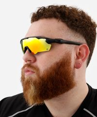 Óculos de sol esportivo unissex desenvolvido em acetato resistente na cor preta com formato geométrico com as extremidades arredondadas. A lente colorida com efeito espelhado, a ponte em U e plaquetas embutidas. Com proteção da lente UVA e UVB.