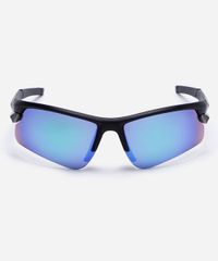 Óculos de sol desenvolvido em acetato resistente na cor preta, com formato geométrico as extremidades arredondadas. A lente na cor mista espelhada, a ponte em U e plaquetas embutidas. Com proteção da lente UVA e UVB.