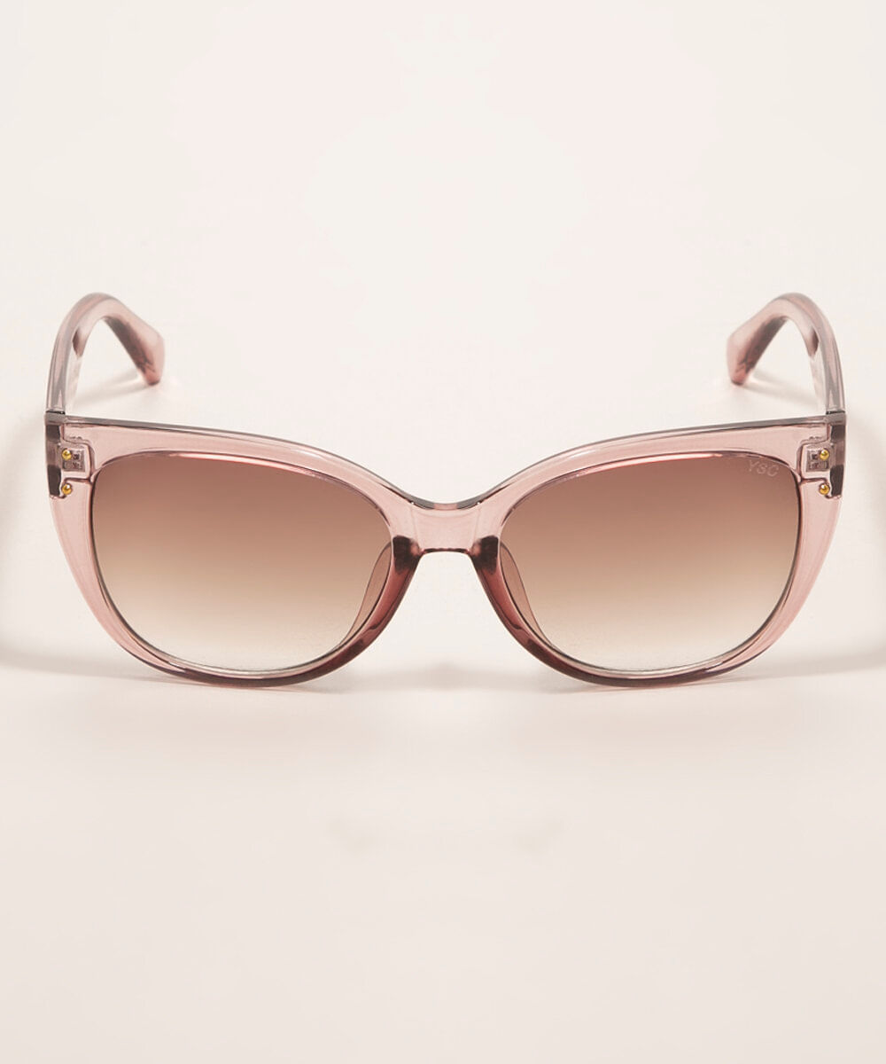 Esse óculos foi feito em acetato maleável e resistente com o formato gatinho. A lente é degradê na cor marrom, a ponte é em U e as plaquetas são embutidas. A proteção da lente é UVA e UVB.