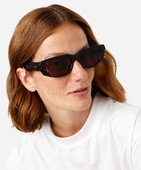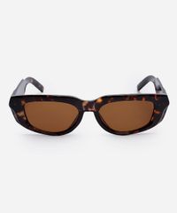 Óculos de sol desenvolvido em acetato resistente na cor marrom com efeito tartaruga, com formato oval e as extremidades arredondadas. A lente na cor marrom, a ponte em U e plaquetas embutidas. Com proteção da lente UVA e UVB.