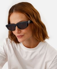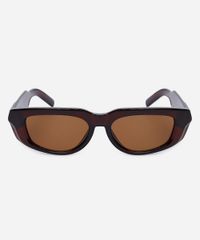Óculos de sol desenvolvido em acetato resistente na cor marrom, com formato oval e as extremidades arredondadas. A lente na cor marrom, a ponte em U e plaquetas embutidas. Com proteção da lente UVA e UVB.