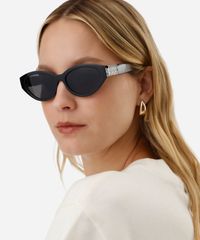 Óculos de sol feminino desenvolvido em acetato resistente na cor preta com formato oval e as extremidades arredondadas. A lente na cor cinza, a ponte em U e plaquetas embutidas. Com proteção da lente UVA e UVB. A Triton é uma marca de óculos brasileira com mais de 40 anos, especializada no mercado ótico, tem o propósito de levar modelos de acessórios: óculos de sol, óculos de grau e óculos clipon personalizados para o público masculino, feminino e infantil.