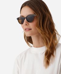 Óculos de sol feminino desenvolvido em acetato resistente na cor marrom com formato quadrado e as extremidades arredondadas. A lente na cor marrom, a ponte em U e plaquetas embutidas. Com proteção da lente UVA e UVB.