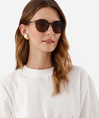 óculos de sol feminino redondo de acetato triton marrom - UNICO