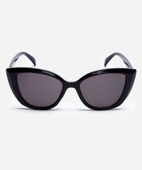 Óculos de sol feminino desenvolvido em acetato resistente na cor preta e formato gatinho com as extremidades arredondadas. A lente na cor cinza, a ponte em U e plaquetas embutidas. Com proteção da lente UVA e UVB.