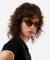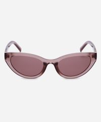 Óculos de sol desenvolvido em acetato resistente na cor rosa com efeito fumê, formato gatinho e as extremidades arredondadas. A lente na cor rosa, a ponte em U e plaquetas embutidas. Com proteção da lente UVA e UVB.