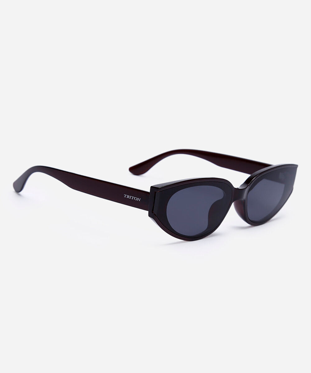 Óculos de sol desenvolvido em acetato resistente na cor vinho com formato gatinho e as extremidades arredondadas. Lente na cor cinza, ponte em U e plaquetas embutidas. Com proteção da lente UVA e UVB. A Triton é uma marca de óculos brasileira com mais de 40 anos, especializada no mercado ótico, tem o propósito de levar modelos de acessórios: óculos de sol, óculos de grau e óculos clipon personalizados para o público masculino, feminino e infantil.