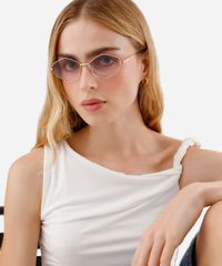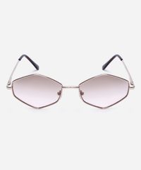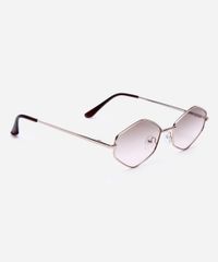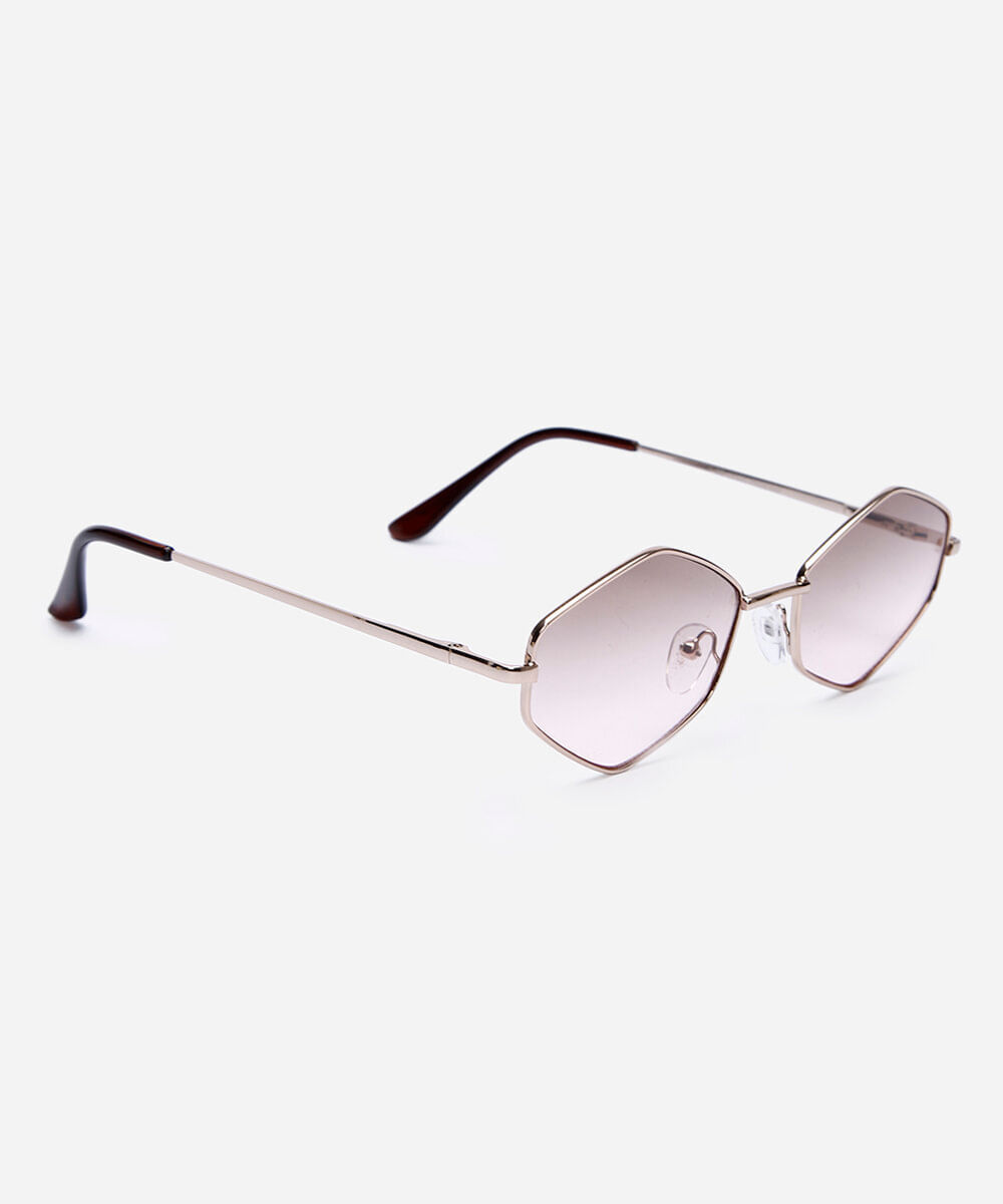 Óculos de sol feminino desenvolvido em metal resistente na cor dourada com formato hexagonal e as extremidades arredondadas. Lente na cor marrom degradê, ponte em U e plaquetas embutidas. Com proteção da lente UVA e UVB.