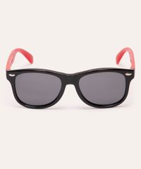 • Armação quadrada em acetato resistente, com a parte frontal preta e hastes em vermelho vibrante.