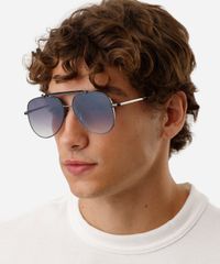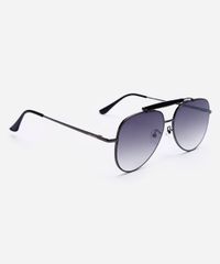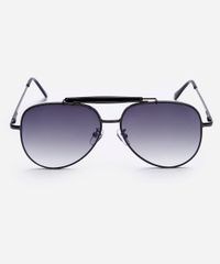 Óculos de sol desenvolvido em metal resistente na cor cinza grafite, com formato aviador e as extremidades arredondadas. A lente na cor cinza degradê, a ponte em U e plaquetas embutidas. Com proteção da lente UVA e UVB.