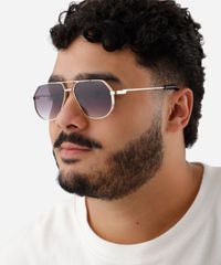 Óculos de sol masculino desenvolvido em metal resistente na cor dourada com formato aviador e as extremidades arredondadas. A lente na cor cinza degradê, a ponte em U e plaquetas embutidas. Com proteção da lente UVA e UVB. A Triton é uma marca de óculos brasileira com mais de 40 anos, especializada no mercado ótico, tem o propósito de levar modelos de acessórios: óculos de sol, óculos de grau e óculos clipon personalizados para o público masculino, feminino e infantil.