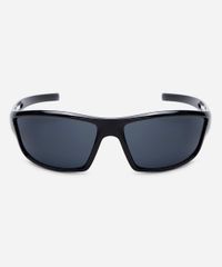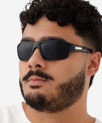 Óculos de sol masculino desenvolvido em acetato resistente na cor preto com formato esportivo e as extremidades arredondadas. A lente na cor cinza, a ponte em U e plaquetas embutidas. Com proteção da lente UVA e UVB.