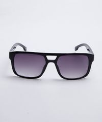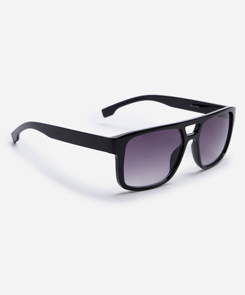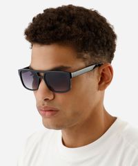 Óculos de sol masculino desenvolvido em acetato resistente na cor preta com formato quadrado e as extremidades arredondadas. A lente na cor cinza degradê, a ponte em U e plaquetas embutidas. Com proteção da lente UVA e UVB.